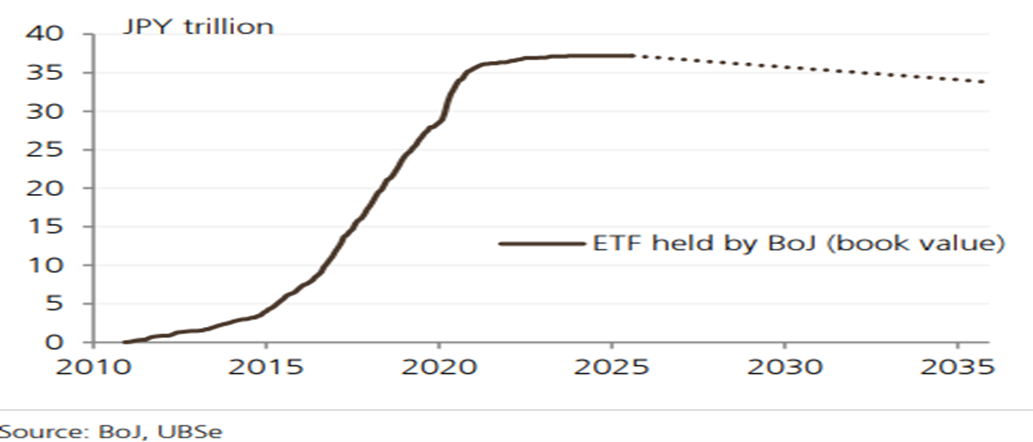 Chart of the Week: Don’t Panic—ETFs held by the BoJ (book value), pace of sale is so slow, it would take 113 years to sell out